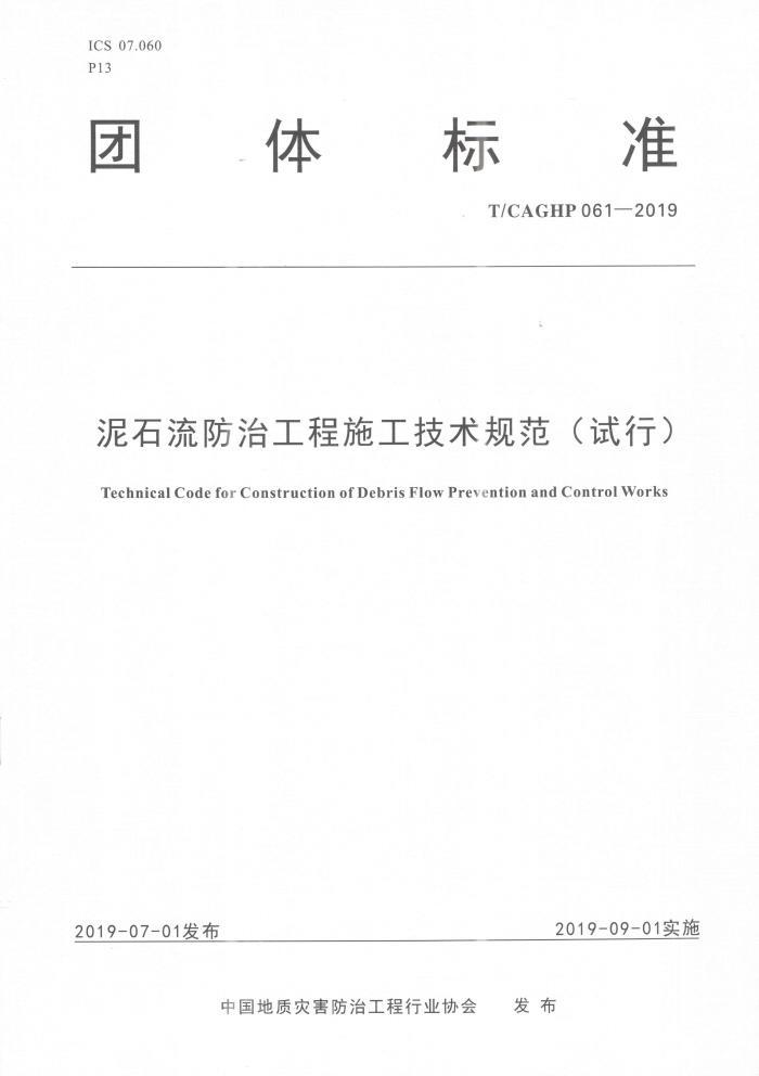 泥石流防治工程施工技术规范(试行)T/CAGHP 061-2019