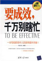 第一章 为什么会“瞎忙” 1 没有目标,怎么能不“瞎忙” 1 缺乏计划,眉毛胡子一把抓 8 不能专注,三心二意后果严重 15 不懂方法,白做很多“无用功” 20 第二章 告别“瞎忙”的基本法则 34 先做重要的事 34 时刻想清楚想要的结果 41 给目标一个期限 46 同一阶段只忙于有限的目标 52 不值得做的事情千万别做 59 把复杂的问题简单化,而不是相反 64 改变能改变的,接受不能改变的 69 第三章 把“忙”落到实处 75 没有落实到位,忙是瞎忙 75 只要功劳,不要苦劳 81 高效执行,拒绝拖延 86 加强沟通,提倡交流 93 随手关上身后的门 99 定时清理你的办公桌 102 勇敢实践,坚持到底 107 培养竞争意识,加强合作观念 111 合理授权,让别人为自己解决问题 114 第四章 “忙”要忙出高效率 124 绕开效率的十个陷阱 124 掌握自己的时间节奏 131 随时发现问题,解决问题 140 把时间花在预防问题发生上 145 简化问题,避免冗繁 148 第五章 “忙”要忙出好结果 153 要以结果为导向 153 要用执行来衡量 159 拥有明确的行动计划 165 把目标写进备忘录 173 不可一蹴而就,要分段实现目标 177 及时修正计划,纠正偏差 181 实现目标,需要专注和专心 185 第六章 “忙”要忙出好心情 191 尊重自己的工作 191 做一个乐观的员工 196 享受工作的乐趣 200 工作是带薪学习的好机会 207 不要做生气的骆驼 211 身心健康最重要 215 后 记 221