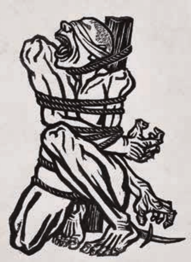 李桦 怒吼吧,中国》 27.5cm×18.7cm 黑白木刻 1938年