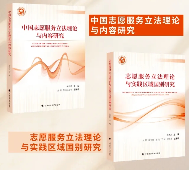 中国政法大学出版社推荐两部“志愿服务立法”法学研究著作,分别是:《中国志愿服务立法理论与内容研究》《志愿服务立法理论与实践区域国别研究》。
