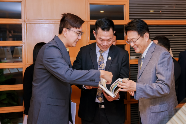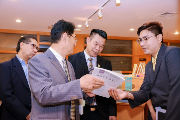 会谈前,刘捷陪同代表团一行参观了外研社图书展区,介绍了外研社在加强国际传播能力建设、精品教材出版、数字化建设与传播等方面的成果,特别是专为泰国开发的《我爱汉语·泰国小学汉语课本》《汉语小词典(泰语版)》《泰国中文教学手册》等内容,为中泰人文交流开发的《泰国文化教育研究》《洛阳伽蓝记(汉语—泰语对照)》等书籍,以及外研U学(家庭版)APP为代表的外研智慧外语教学平台在数字教材、阅读体系建设、多语种人才培养等方面的创新应用与成果,受到了代表团成员的高度关注和赞赏。