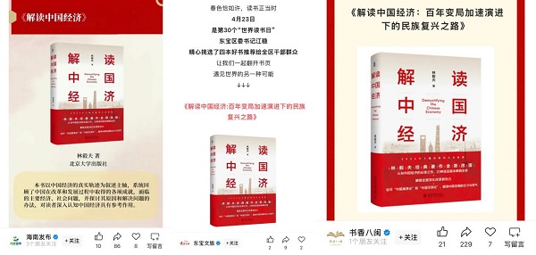其中,林毅夫教授的《解读中国经济:百年变局加速演进下的民族复兴之路》受到了不约而同地推荐,出现在了海南省委宣传部推荐书单、福建省1月领导干部阅读推荐书单、中远海运散货运输有限公司季度主题悦读活动及湖北荆门东宝区委书记江稳向全区干部群众推荐的书单中。