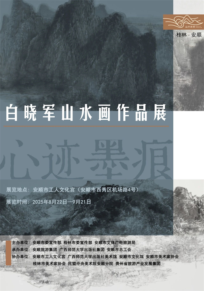 8月22日—9月21日,广西师范大学出版社集团“山水阅读节2025——桂林&安顺阅读双城记”系列文化活动安顺站将举办“心迹墨痕——白晓军山水画作品展”“文艺作为入口:探寻阅读城市的路径”研讨会和Citywalk等文化活动。