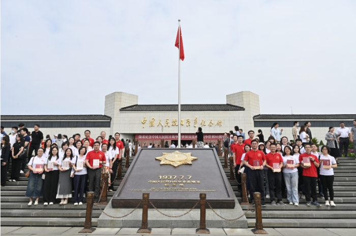 9月10日,为铭记历史、缅怀先烈,弘扬伟大的抗战精神,致敬伟大胜利,中国人民大学出版社(以下简称“人大社”)人文大众党支部、行政党支部和出版联合党支部组织党员群众赴中国人民抗日战争纪念馆参观“为了民族解放与世界和平——纪念中国人民抗日战争暨世界反法西斯战争胜利80周年”主题展览。本次活动以人大社出版的《抗战家书》《〈黄河大合唱〉简史》两种精品图书为载体,设计家书共读、打卡互动、红歌传唱等特色环节,通过“党建+出版”的沉浸式教育模式,引导党员群众在重温历史中传承红色基因,在业务实践中强化使命担当,进一步激发干事创业的责任感与行动力。人大社党委书记、董事长李永强,总编辑谢富胜,副总经理王磊,党委副书记、纪委书记刘玮参加活动。