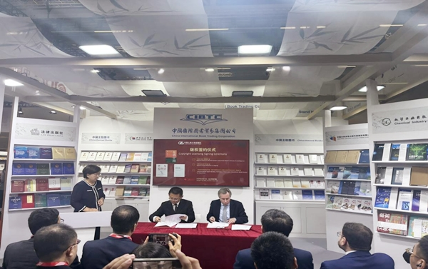 在法兰克福书展期间,人大出版社联合中国国际图书贸易集团公司举办了“一带一路”共建国家出版合作体版权推介及签约活动。人大出版社联合陕西师范大学出版总社、西安交通大学出版社、兰州大学出版社、华东理工大学出版社等重点推介版权图书25种,并与泰勒·弗朗西斯出版集团、圣智学习出版集团等国际知名出版机构达成多项英文版合作协议。其中与泰勒·弗朗西斯集团就《东西中国》《华为定价法》《包容性市场系统的构建》三本图书举行版权签约仪式,与圣智集团就《读懂中国,关键要读懂中国式现代化》英文版达成签约意向。代表团还专程访问施普林格·自然集团海德堡办公室,举行《制裁与经济战》英文版签约仪式,并就合作项目进行深入交流。