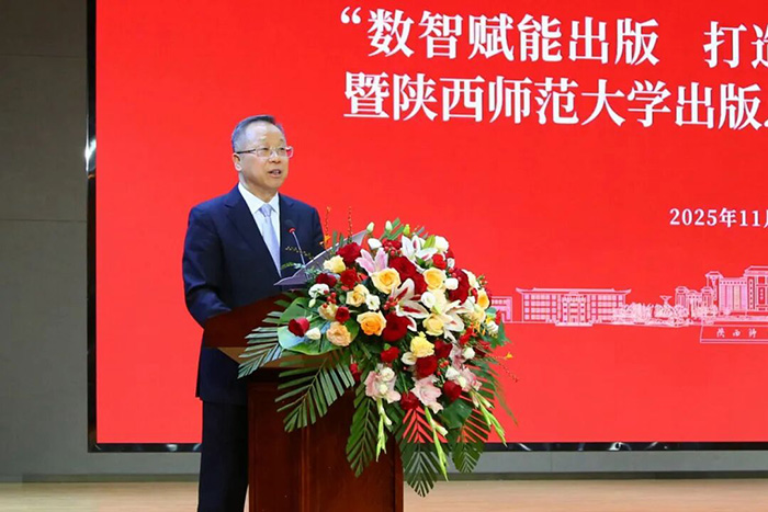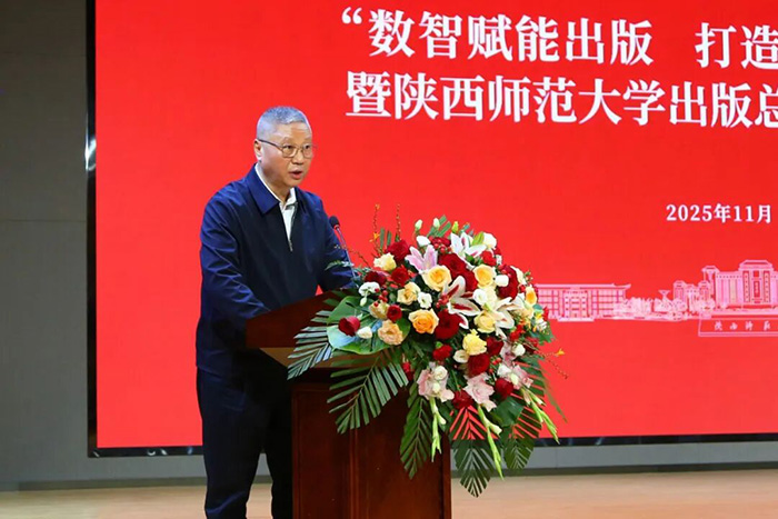 邬书林致辞,对总社取得的成绩给予肯定,表示总社在多个领域形成鲜明出版特色,且积极探索融合转型、实施人才强社战略,队伍建设成果显著。在当今出版业面临深刻变革与重构的新时代背景下,师范大学出版社作为我国出版事业的一支特色鲜明的重要力量,更应敏锐洞察趋势变革,主动谋划未来发展。一是要提高政治站位,深刻把握新时代文化使命;二是要筑牢学术出版根基,服务自主知识体系创新;三是要拥抱人工智能浪潮,打造出版新质生产力;四是要创新人才培养机制,积极参与出版学科共建。希望大家深入研讨,凝聚共识,携手并进,为建设中华民族现代文明做出更大贡献。
