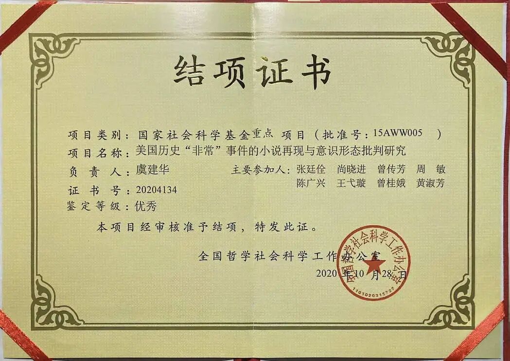《“非常事件”与美国历史小说》是国家社会科学基金重点资助项目(批准号 15AWW005)的成果,结项评定结果为“优秀”(证书号 20204134)。