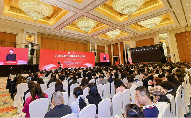 近日,由北京外国语大学、安徽省教育厅主办,中国教育学会、全国基础外语教育研究培训中心、中国外语教材研究中心、安徽省教育科学研究院提供学术支持,外语教学与研究出版社(以下简称“外研社”)、合肥市教育科学研究院承办,合肥一六八中学、合肥经开区社会发展局教育发展中心、合肥一六八玫瑰园学校东校、合肥一六八玫瑰园东校教育集团经开实验学校、合肥市明珠小学、合肥市朝霞小学协办的“2026年基础外语教育改革与发展研讨会”开幕。